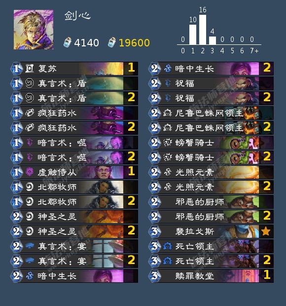 赎罪教堂是这个版本给剑心最厉害的补强,兼具buff与过牌予一体,我个人的建议是满编这一张卡牌,不过价值3费挺需要剑宗心火好好斟酌一番。另外一个大补强则来自于中立新卡邪恶的厨师,对于剑心来说,依靠场面优势一回合摸到3+的伤害还是蛮简单的,有了比较稳定过牌的剑宗心火牧在强度上相较于当前版本能更上一层楼。裴拉戈斯是一张帮助卡组突破上限的牌,可以近似把它理解为加强版牧师专属的西风灯神。