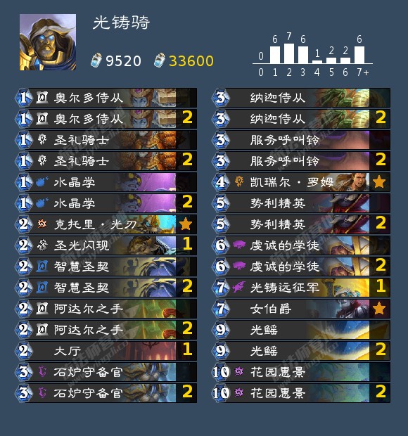 光铸骑这个体系还是着重讲一下这个新橙卡女伯爵,主要是其他的卡给我一种浓厚的jjc味道,私以为作为圣骑士的专有职业体系不应该把强度仅仅体现在场面交换上。女伯爵这张卡从强度上来说是绝对超模的,衍生物3费就能打出其他职业特别高费用才能打出的橙卡,但比较尴尬的问题在于,狂野的职业橙卡,用不出来的橙卡比不能用的多,这就导致了中外主播试玩光铸骑的时候,经常发现三个呆瓜的情况,职业随从传说牌能够扭转颓势的牌太少了,更多的时候是优势锦上添花,这一点相信带着巨龙宝藏玩剽窃贼的朋友们都深有体会。另外一个比较尴尬的点在于,它的衍生物最快最快也要8费才能够打出,而圣骑士的8费节奏往往应该是光铸凯瑞尔,刚好卡住关键回合就不得不让这张卡的强度再往下掉一些。势力精英倒是一张非常顶的牌,但我更希望作为圣骑士独立体系光铸内的一张史诗卡牌,它应该是4费,最好再有个风怒才符合强度预期。(夺尸者对不起)