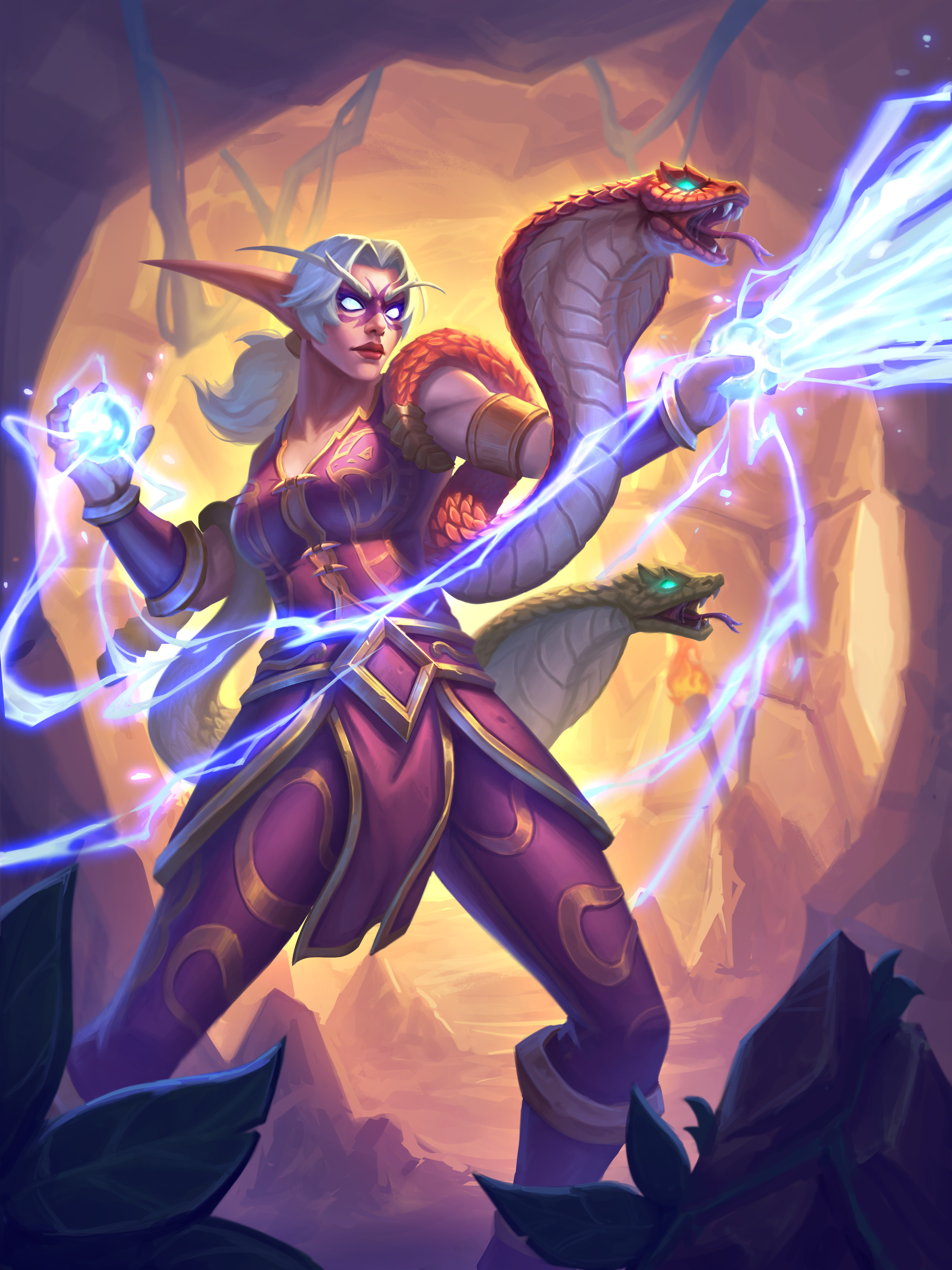 队伍:大德+古夫+伊莉斯+瓦斯琪+阿茜萨+贝恩,加了俩纳迦进去,主母的12/24嘲讽是可以吃到伊莉斯和古夫的增益的,瓦斯琪装备1和12/24嘲讽算是老配合了。必要的时候这套也可以转法术流派玩的。