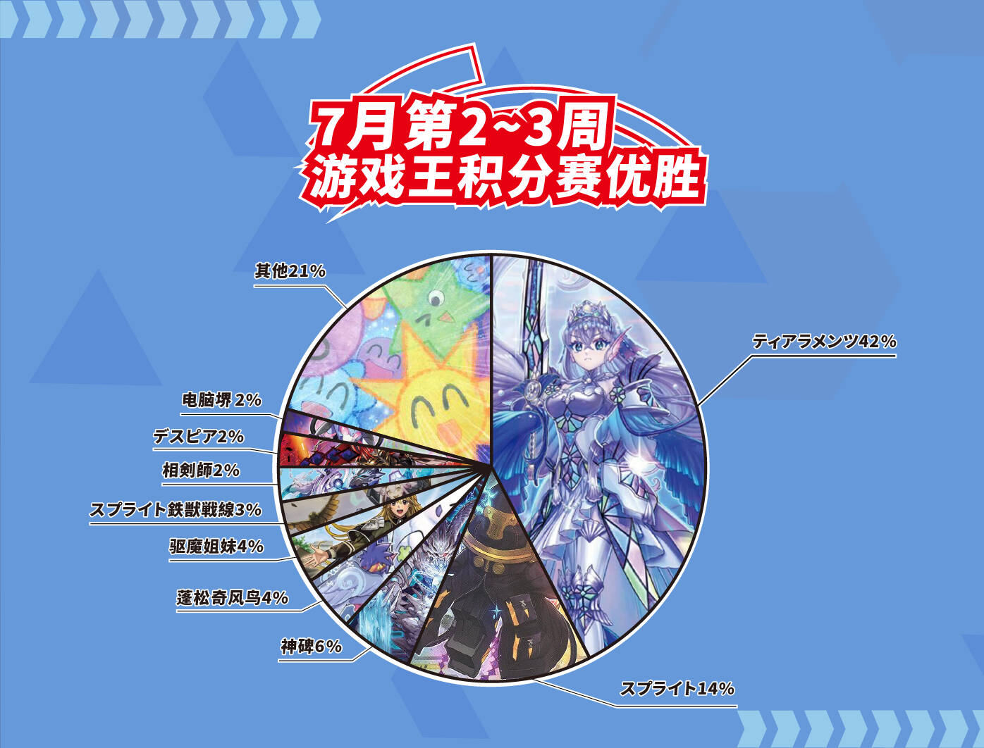 7月最2-3周,我们收集到165场各店铺举办的OCG环境积分赛事,计2667人参赛,共收集到165套冠军卡组,这些卡组的类型分布如下: