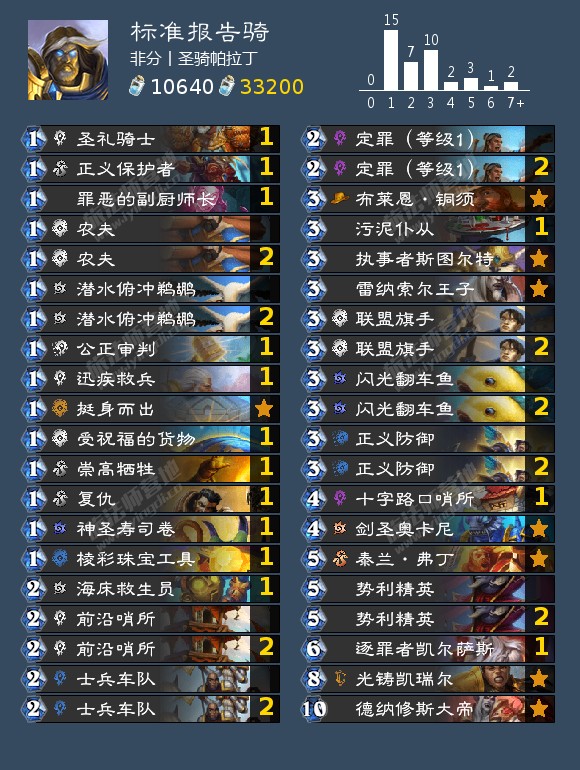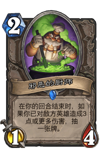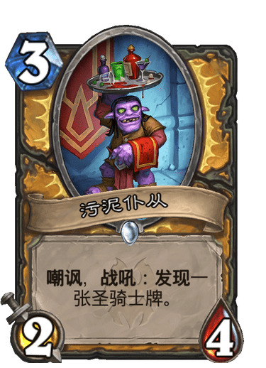 3点伤害的要求,标准圣骑士很难在前几个回合达到;狂野模式的圣骑士有神恩术,螃蟹骑士+智慧祝福,战斗号角等更优秀的手段,不需要(甚至他的未黑化版本汤水商贩比他好用)这样的过牌。