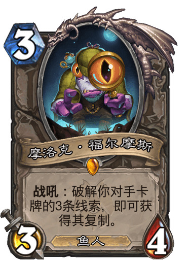 这张卡的机制较为有用,334的身材也不差,可以限制某些随从型otk的发挥,典型代表就是鬼灵贼。或者简单点,3费丢下去4费对面的快攻会少出一只生物。狂野模式薄的宇宙骑或许会考虑。