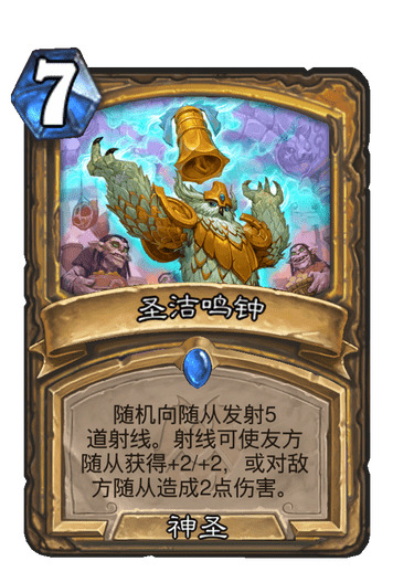 新版本唯一一张神圣法术反而会影响检索。这张卡的理想情况是仅我方场上有随从,能大幅度增加场攻。但是如果有效次数用于解敌方随从,效果则会大打折扣。