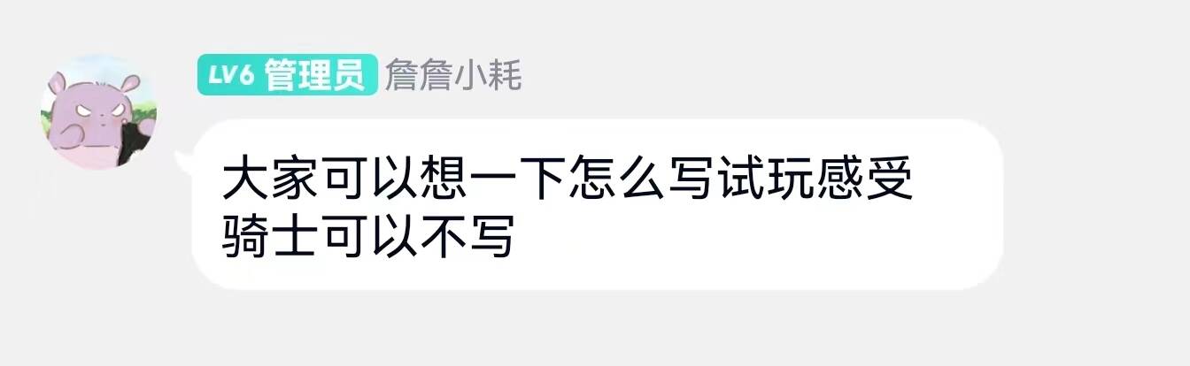 不过说起来,之前的文章里有提到过,试玩结束之后应该要有一篇试玩感受来着。至于为什么试玩感受咕了呢,请看——(笑)