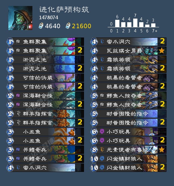 这是一套新版本进化萨,和圣物体系不一样的是,进化萨是有先前的强度作为参考的,因此整体上社区预构筑的进化萨卡组往往更多一些......而在众多进化萨构筑中,这套1478074的进化萨受认可度是最高的。