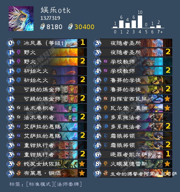 综合来看,这套冰火法整体构筑比较规整,存在的问题可能是过牌效率较低,且4-8费手牌较多,可能较为卡手。