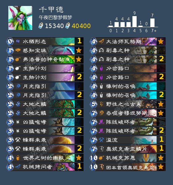 来自午夜巴黎梦假梦的一套千甲德,他在上个月使用这套卡组以56%胜率从580+名打到第30名。