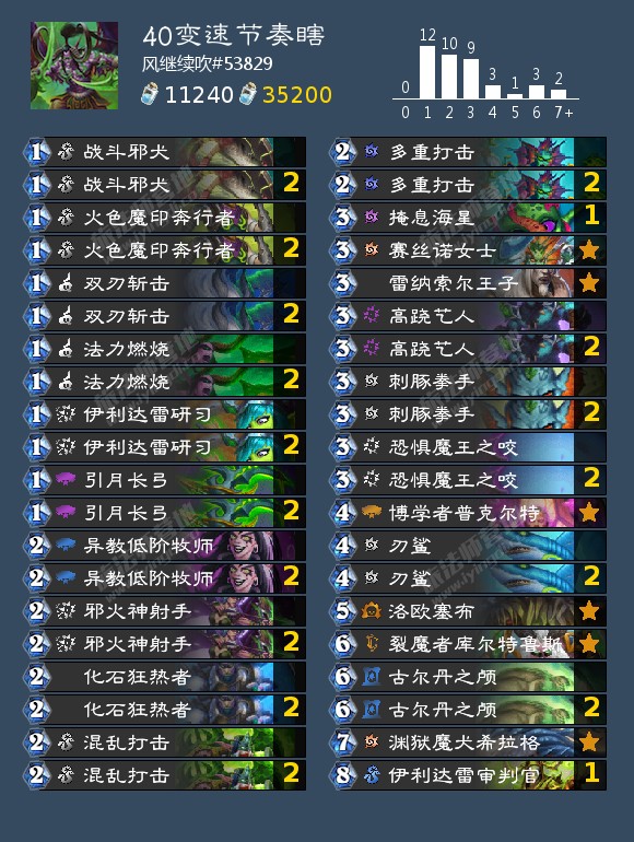 来自风继续吹#53829的变速节奏瞎,上个月,他使用这套卡组以134场60%的胜率在8K+划水。