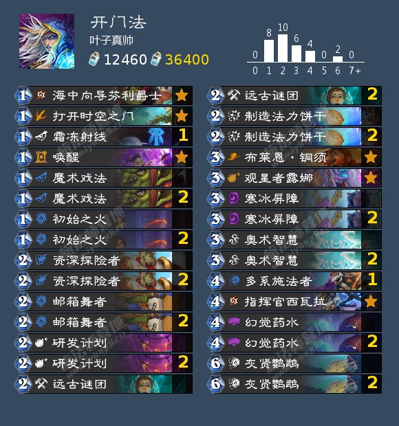 来自叶子真帅的开门法,他使用这套卡组在昨天以26—15打到第36。