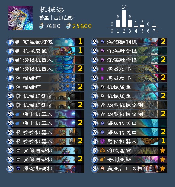 来自繁星丨吉良吉影的机械法,他昨天使用这套卡组以29-20打到第68名。