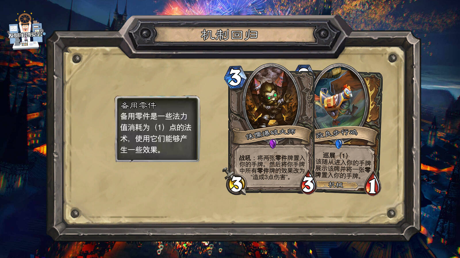 *每使用三次英雄技能,下一次发现的零件牌便会三张都为时间回溯装置。