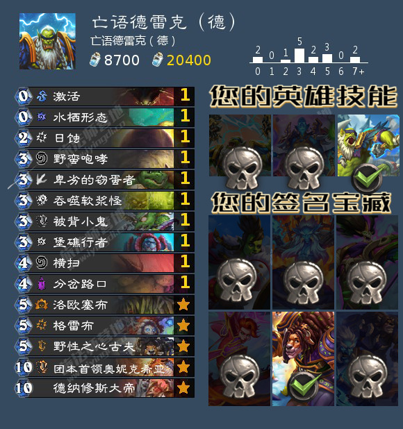 - 今天的卡组不难看见有很多“新面孔”,大家还是要谨慎尝试,但凡觉得不行的还是玩传统冰法或者亡语结盟德鲁伊的德雷克