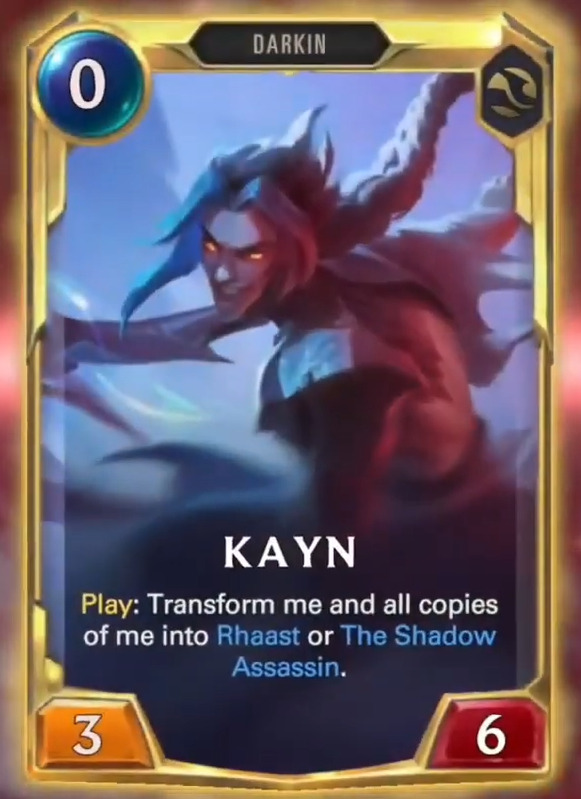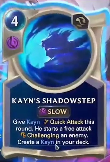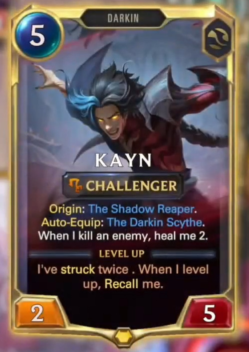 本回合给凯隐先制攻击。他挑战一个敌军,发起免费攻击。生成一张凯隐置入己方牌组。