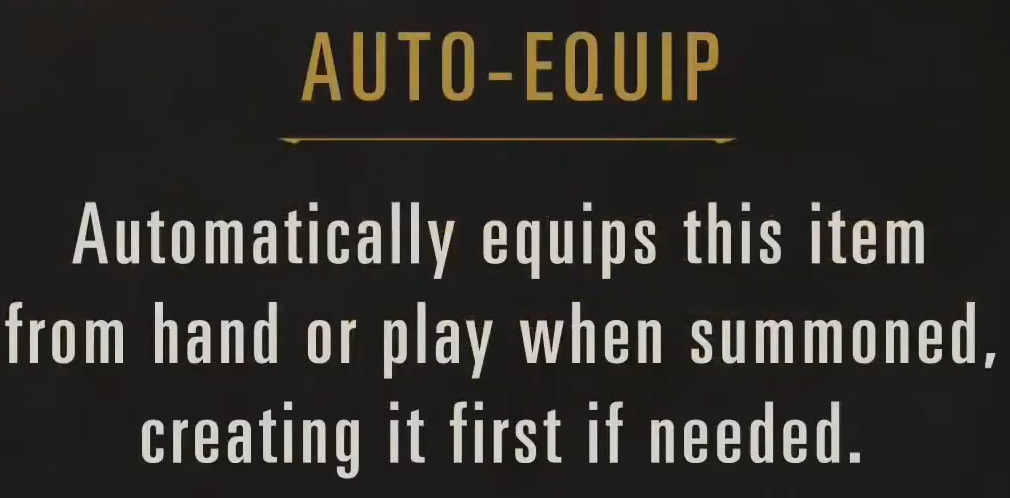 自动装备:召唤时自动从手牌或场上装备此物品。如无则先生成之。