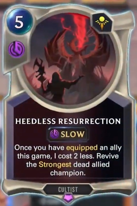 一旦己方在本局游戏装备过友军,此牌消耗减少2。复活己方最强的英雄。