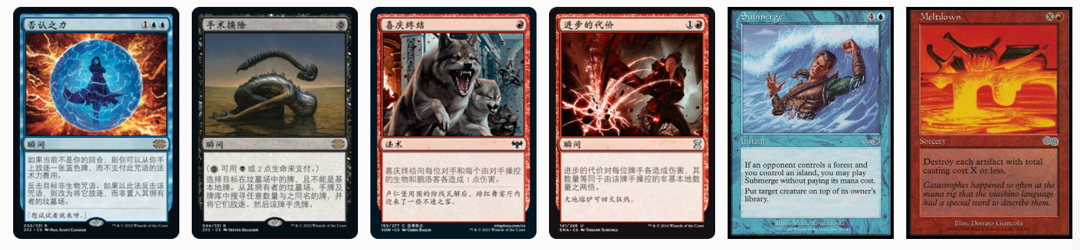 比如内战的喜庆终结就是圣地计划的——你不会想要这玩意帮你踢死对面。相反,你用这个是为了让你拖长盘的牌发挥作用,因为这张牌防止你被小生物铺场打死。而荒原则是荒原计划的一部分(没想到吧!),它能让你压榨对方的法术力费用,但没法帮你用神秘圣地捞展现迭代。