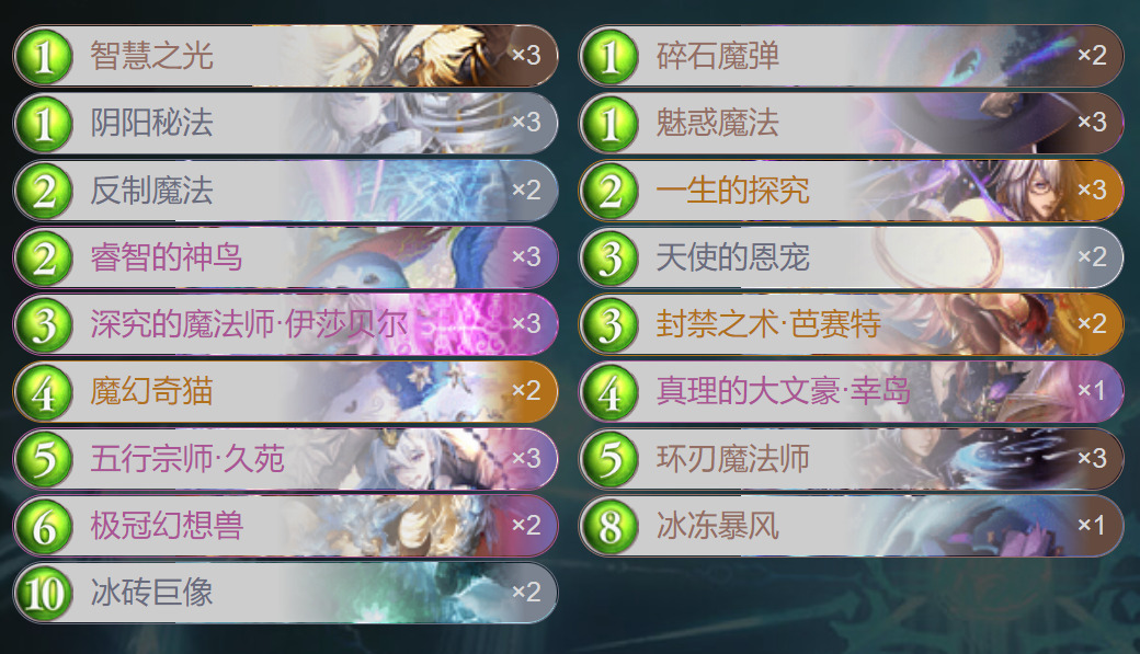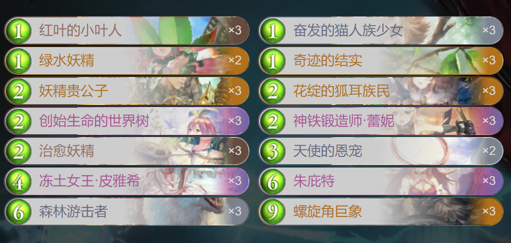 进化妖的制胜手段依赖场面,以及刷好任务的“妖精贵公子”配合低费“螺旋角巨象”进行一回合中大量的伤害倾泻。