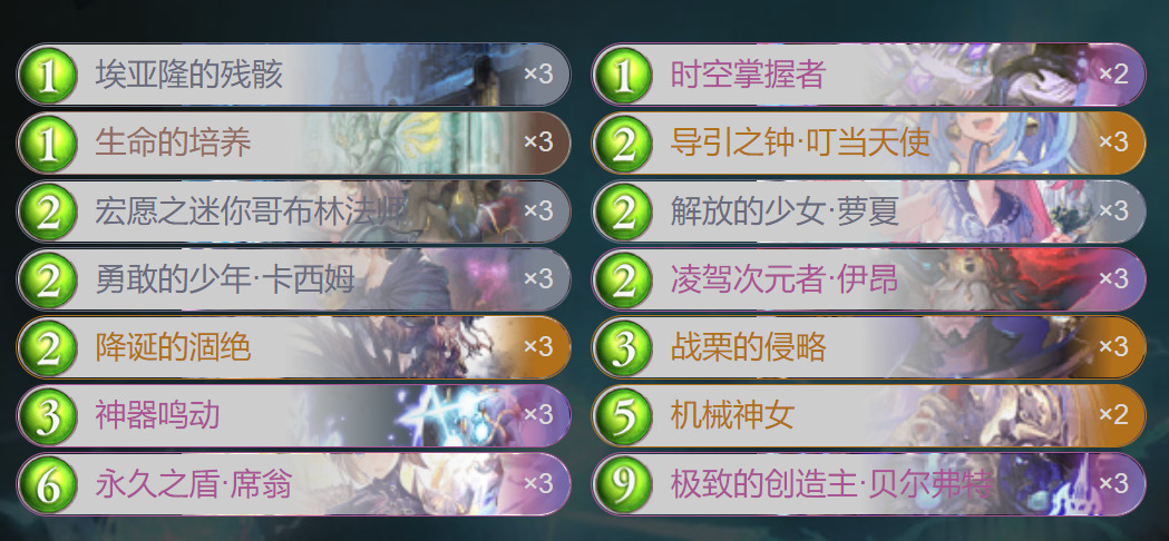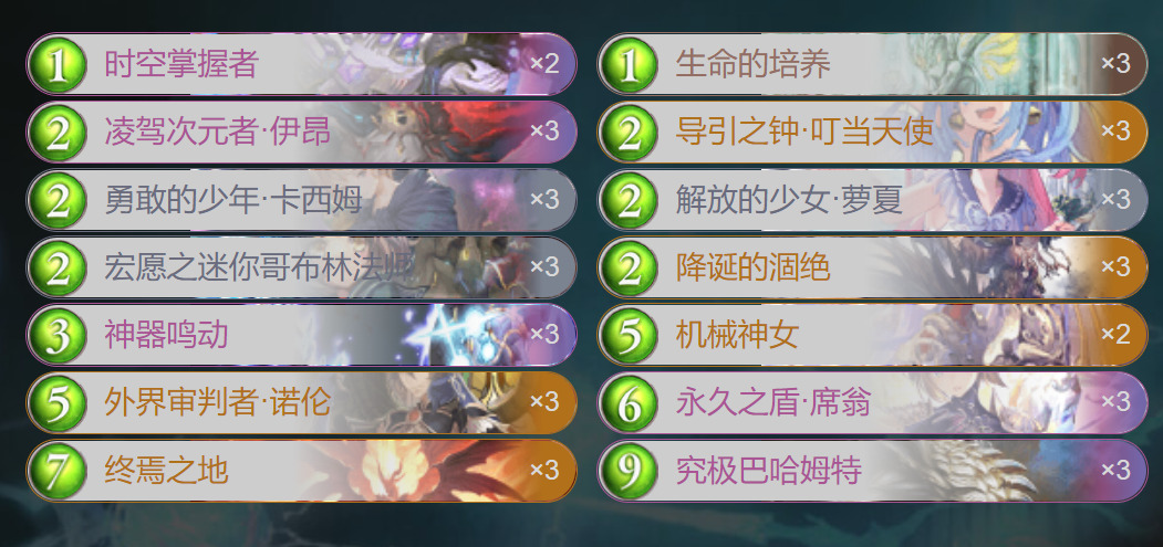 在上个版本就已经有了抬头趋势的卡组,这个版本补上“遥不可及的睿智·里维”和“工房炼金术师·诺诺”后,几乎成为了最全面的卡组,能铺能解能快攻还能憋OTK,可以说是在预览阶段就被确定的T1。