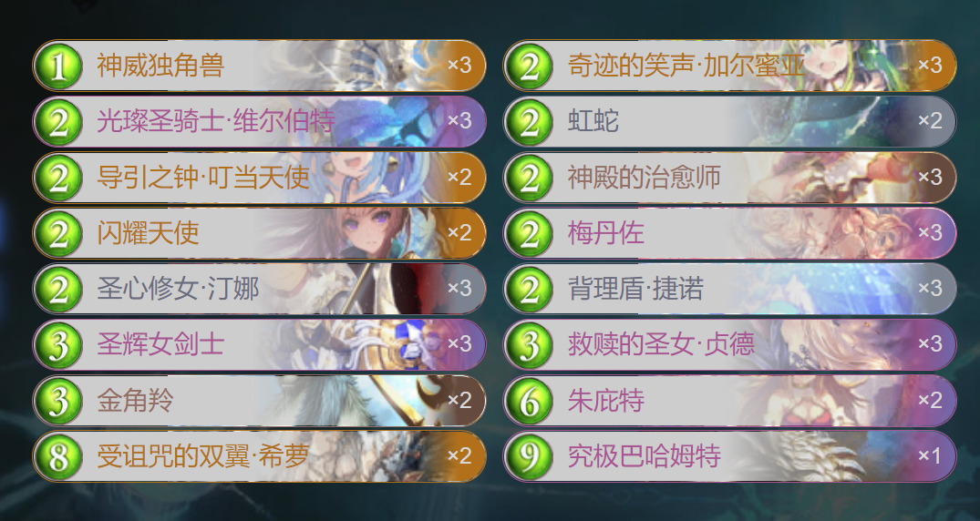 守护教的优势在于下限高,稳定,抽牌手段也不少,返场铺场能力优秀。
