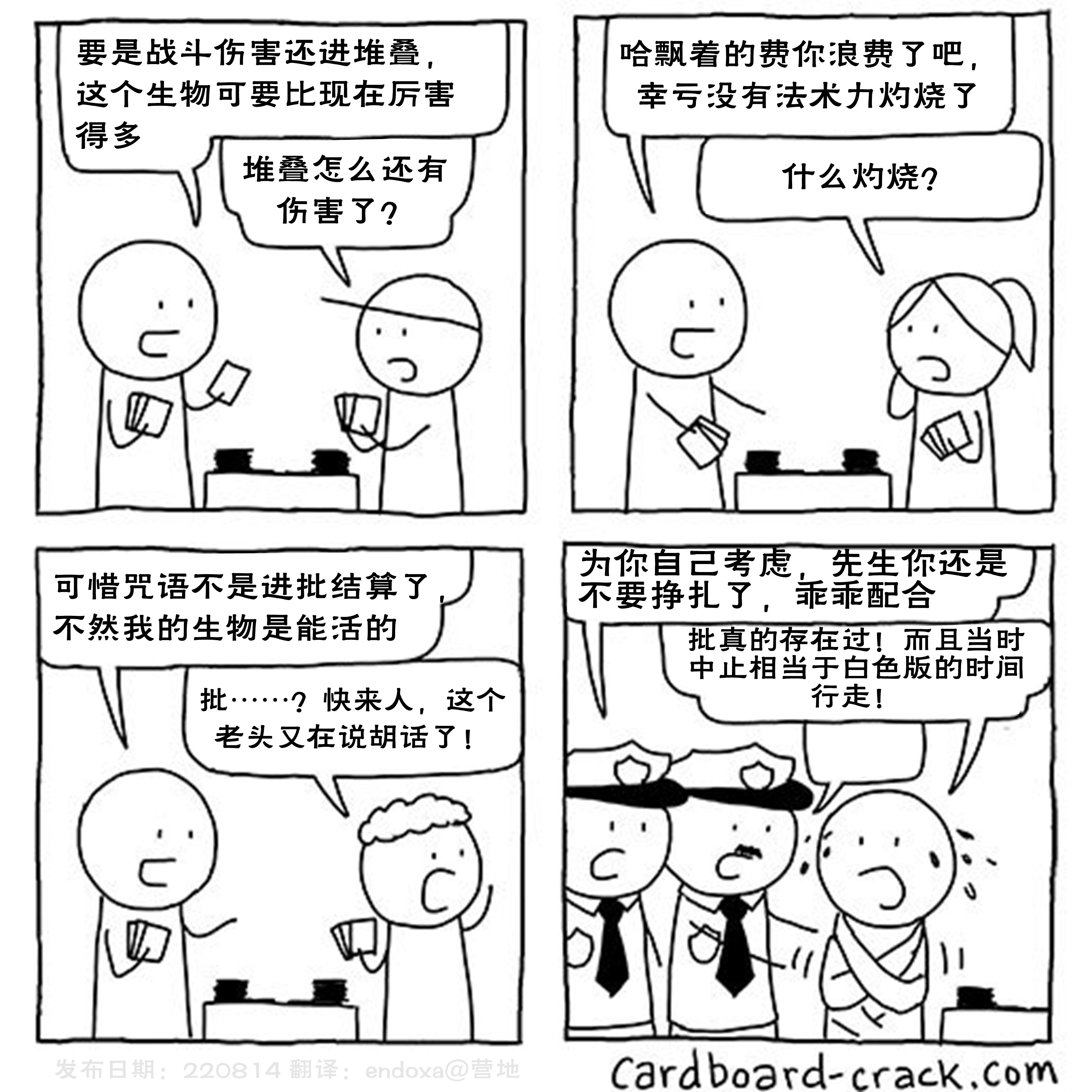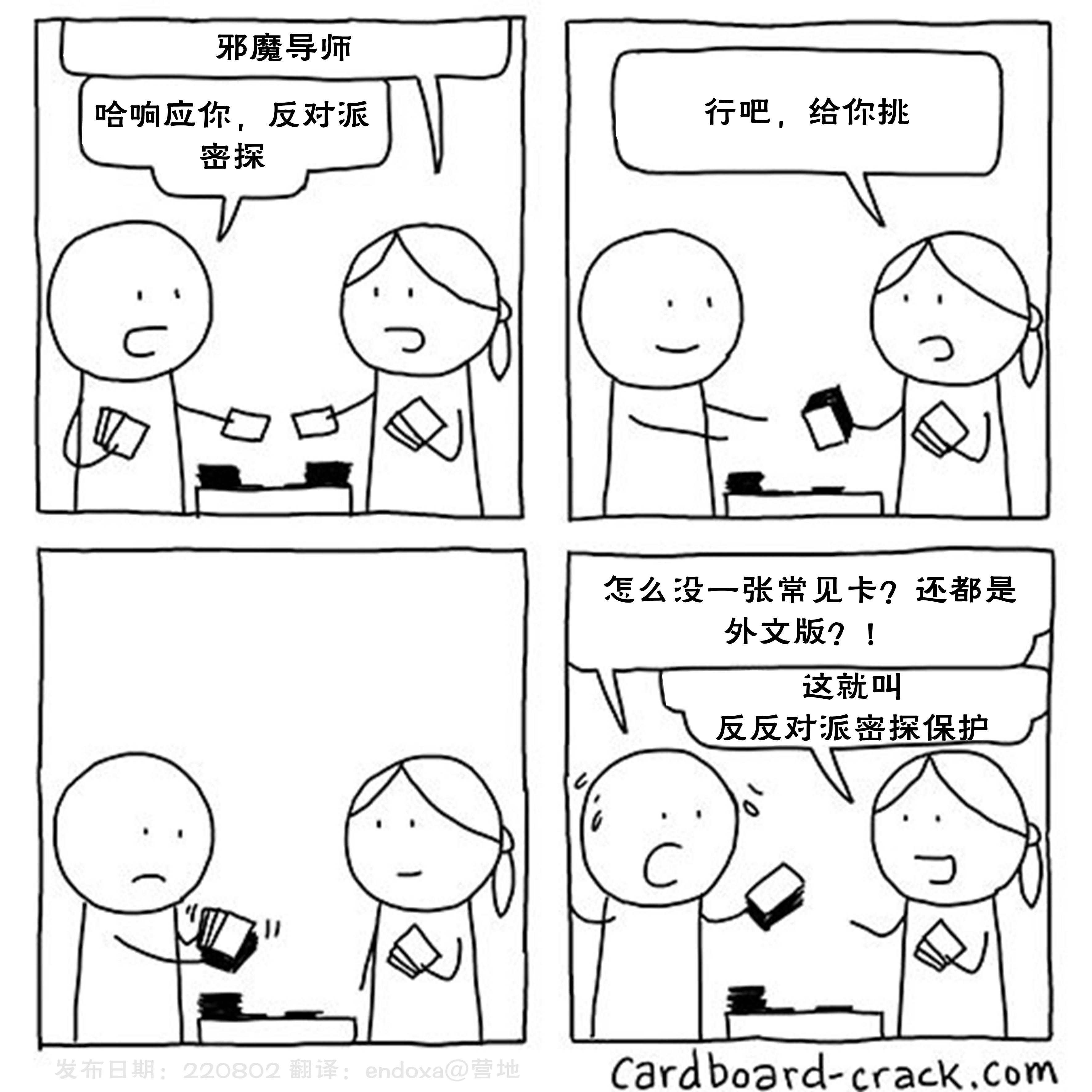 译注:英语里“指示物”跟“反击”两个词同形,都是counter,这也是卡牌游戏经典双关烂梗了。为使语境通顺,中文翻译时最后一格有改动。