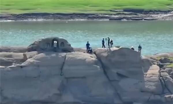 原本处于汛期的长江水位也不断走低,甚至由于连日来长江水位回落,重庆巴南区一常年淹没在江水中的佛爷梁岛礁露出江面。