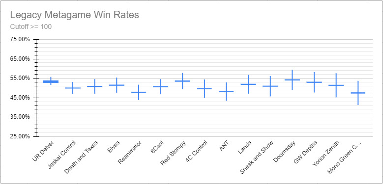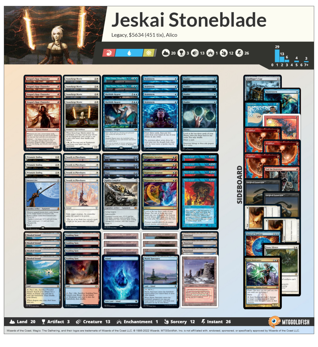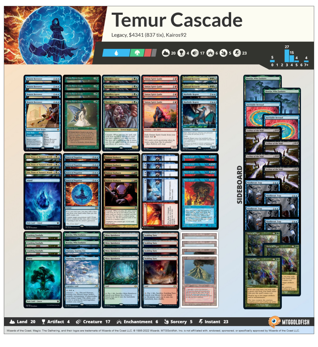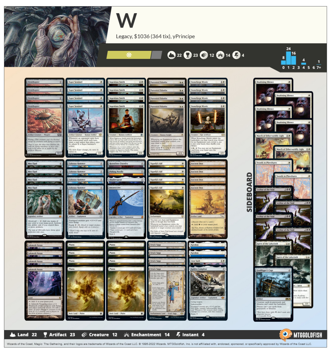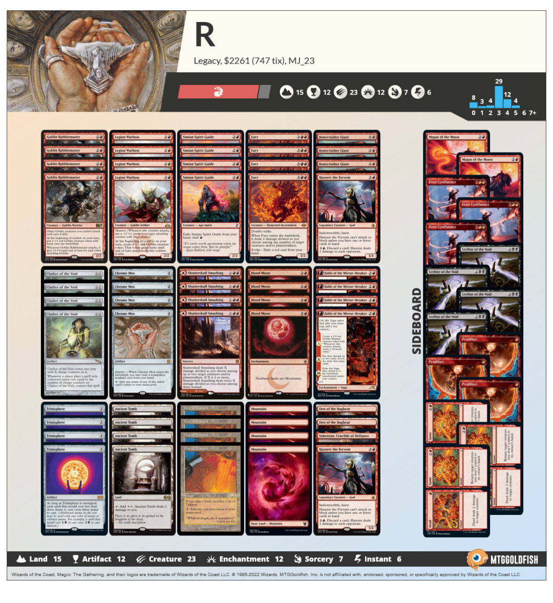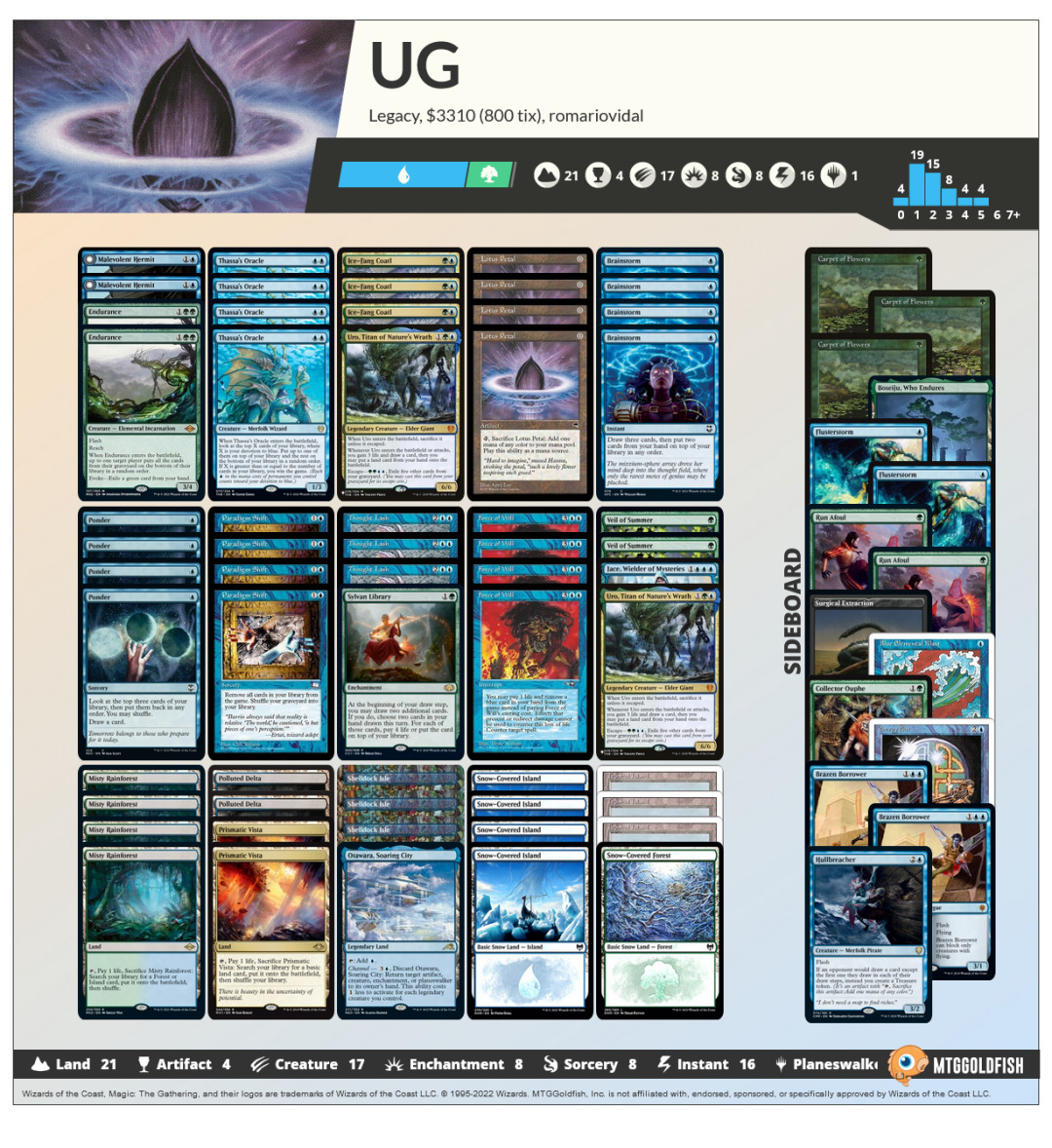 上周还有一场 Legacy Showcase Qualifier event,因为符合参赛资格的人很少,所以只有 29 人参赛,牌表对大众来说没有参考价值,因为高端的食材往往参赛者会以极端竞技的思路考量 meta 和构筑套牌。同样因为没有官方牌表,所以我们只能通过 Legacy Data Collection Project 一窥门径。