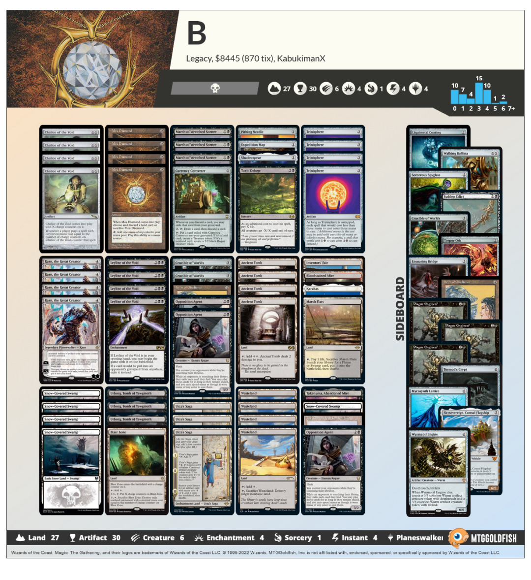 这个组法相当令人激赏,它显示了牌手构筑套牌的过人之处,他只专注于期望看到的对局(主要是掘密师,或者是其他 白绿深渊),并真正专注于那些对场面有帮助的选择。生活不是卡通,metagaming 也是 deckbuilding ,祝贺 cftsoc3 在这场比赛中获胜!