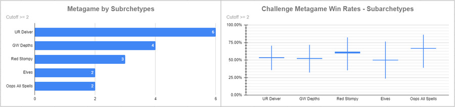 红蓝掘密师 最多人使用,所以人们也围绕着 白绿深渊 和 三定红 出招。三定红 和 Oops! All Spells 表现不错。