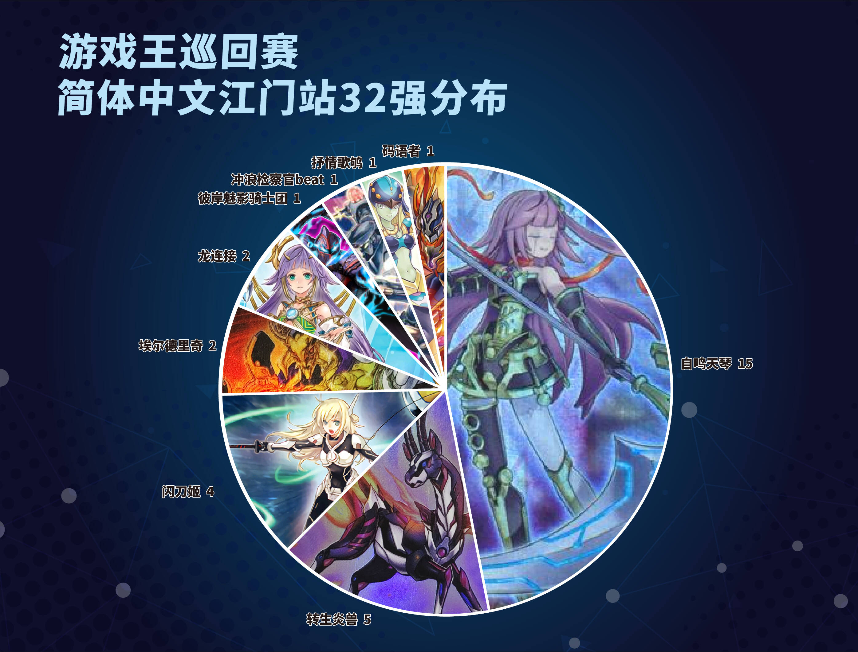 经过DAY1的8轮瑞士轮的激战后,决出的32强的卡组类型分布如下: