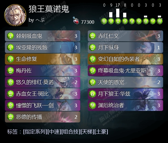 月下狼王·华兹可以通过激奏高效进复仇并附带过牌,既能支持悠久的绯红·莫诺,也能帮助赤血女王·斑比、终幕吸血鬼·尤里亚斯、渊厄统治者等组件触发额外效果。华兹本体则拥有很高上限,可以在特定情况下发挥价值。