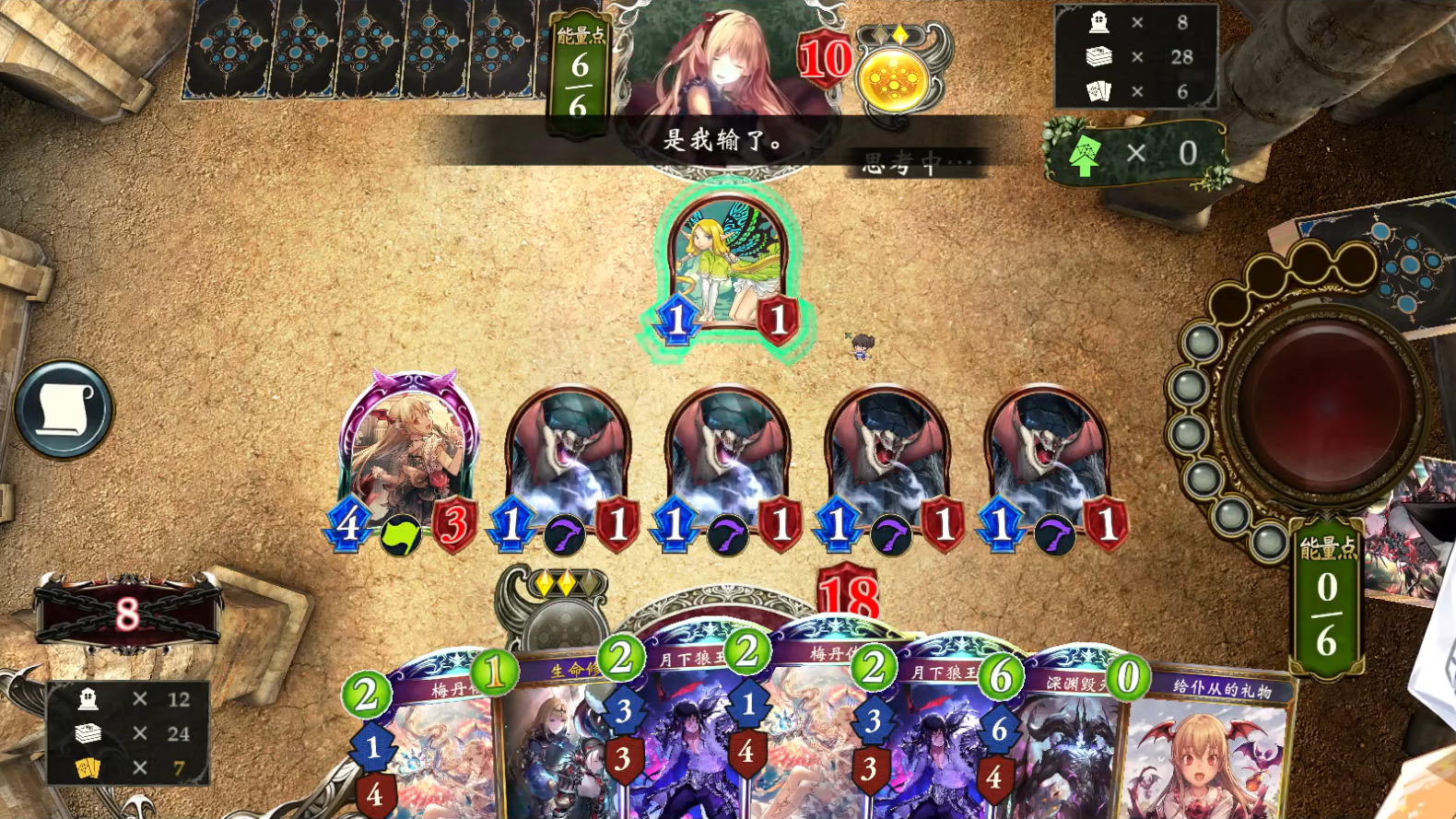 不必强憋组合技,优先过牌。前期适当争夺场面。中期找机会进化终幕吸血鬼·尤里亚斯,获取3种主战者效果。优先走分段斩杀路线,利用赤血女王·斑比、渊厄统治者等牌打分段斩杀。但如果快速凑齐了OTK组件,或在通过解牌和渊厄苟活到后期后凑齐了组件,可以通过悠久的绯红·莫诺和生命修复,配合给仆从的礼物(来自斑比)、恶德的传播、变幻自如的伪装者等组件打OTK。