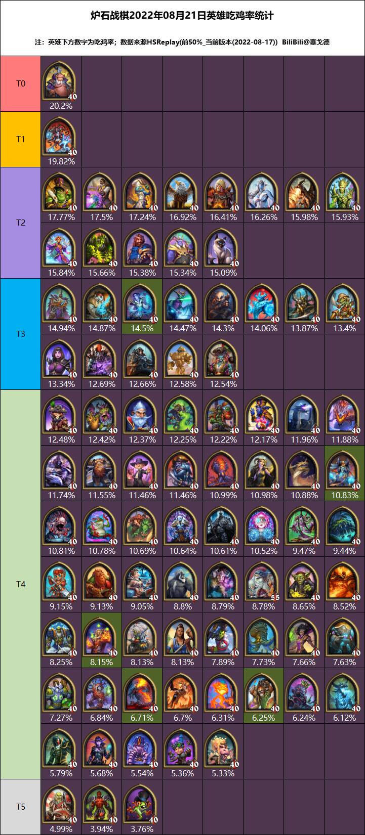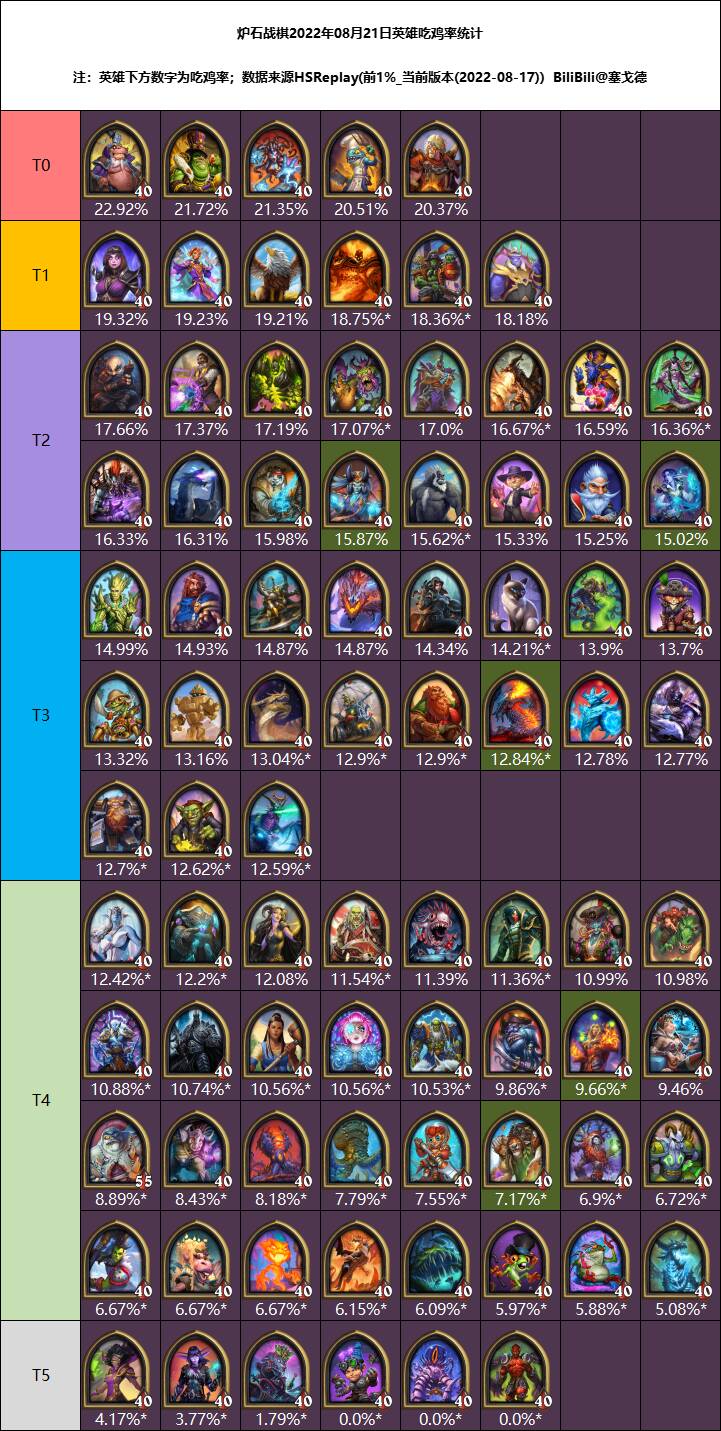 我每周都会更新战棋大数据的英雄排行榜(如果排名没有大变化也可能咕咕咕),也会发一些英雄使用心得,欢迎大家关注一下,觉得有用也可以来个三连。 另外如果大家有战棋的新战术或使用心得,也欢迎私信我投稿,我如果觉得还不错或者很有意思也会发出来给大家看,并标注你的用户名(如果您的投稿被采纳并发表于每周的大数据排行榜,我将会在次周给您价值25元的B站月度大会员或50张B站漫画卷)。如果有什么特别想了解使用方法的英雄也可以直接在评论区留言,我都会看的。