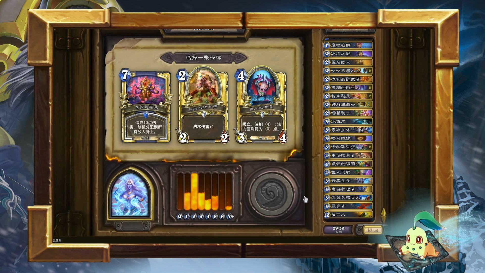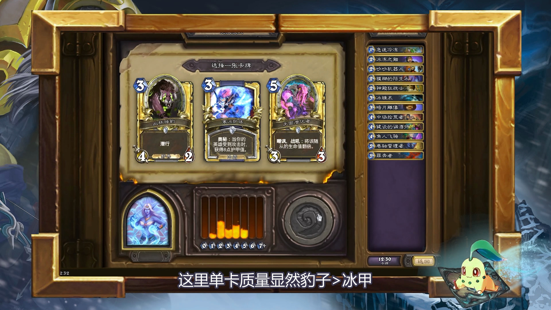 这里单卡质量显然豹子>冰甲,但是这个环境冰甲对抗猎人和骑士有奇效,而且我们已经有了调酒师,那就投资一手,事实也证明这个构筑非常合里!