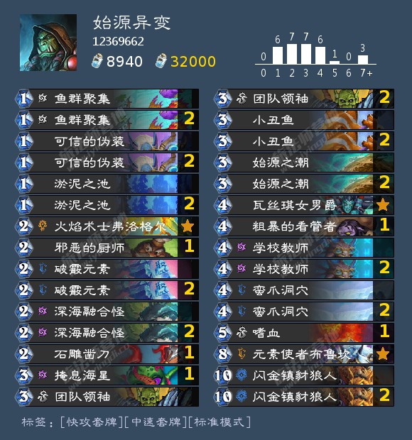 这张卡超级灵活,视界术五费变身啦,闪电风暴击杀一个小鬼术啦,雪球大战劝退一个奇迹贼啦,都是进化萨玩家的别种乐趣,相当于站一个大怪外加力挽狂澜的一击!