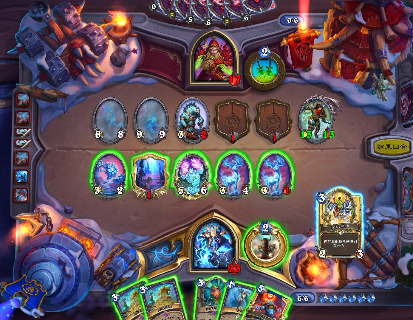 德鲁伊普遍都是古夫大帝德,这副套牌很笨重,基本前四个回合就是空过,只要铺场平推就好了,五费嗜血斩杀