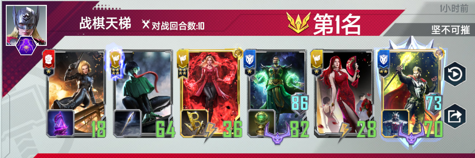 升至6本,搜索【奇异博士】补充伤害,补齐队伍星级,使用【生命结界】稳定血量。