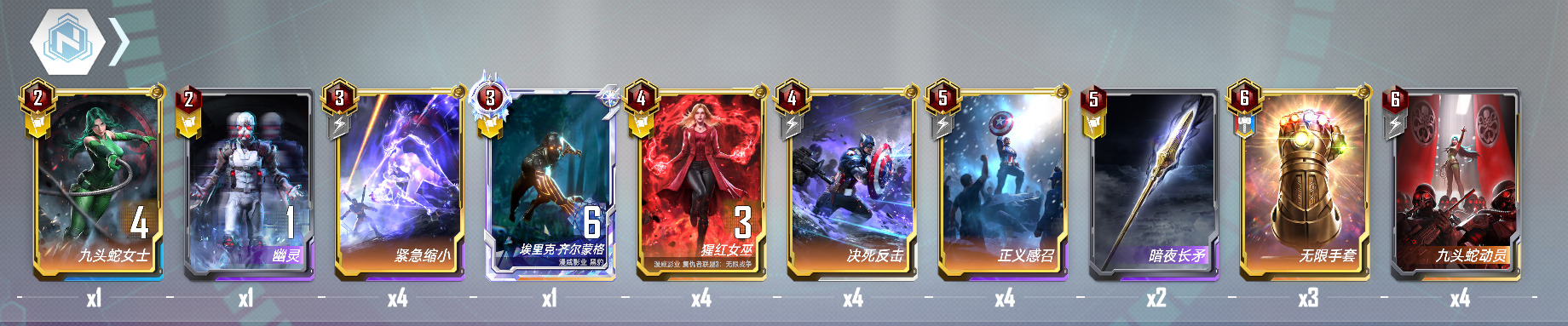 (为了感召效率,能不带怪的卡位都没带怪。只需要滤掉九头蛇女士&罪恶先生、隐士和红房女特工,感召必定找到核心怪。)