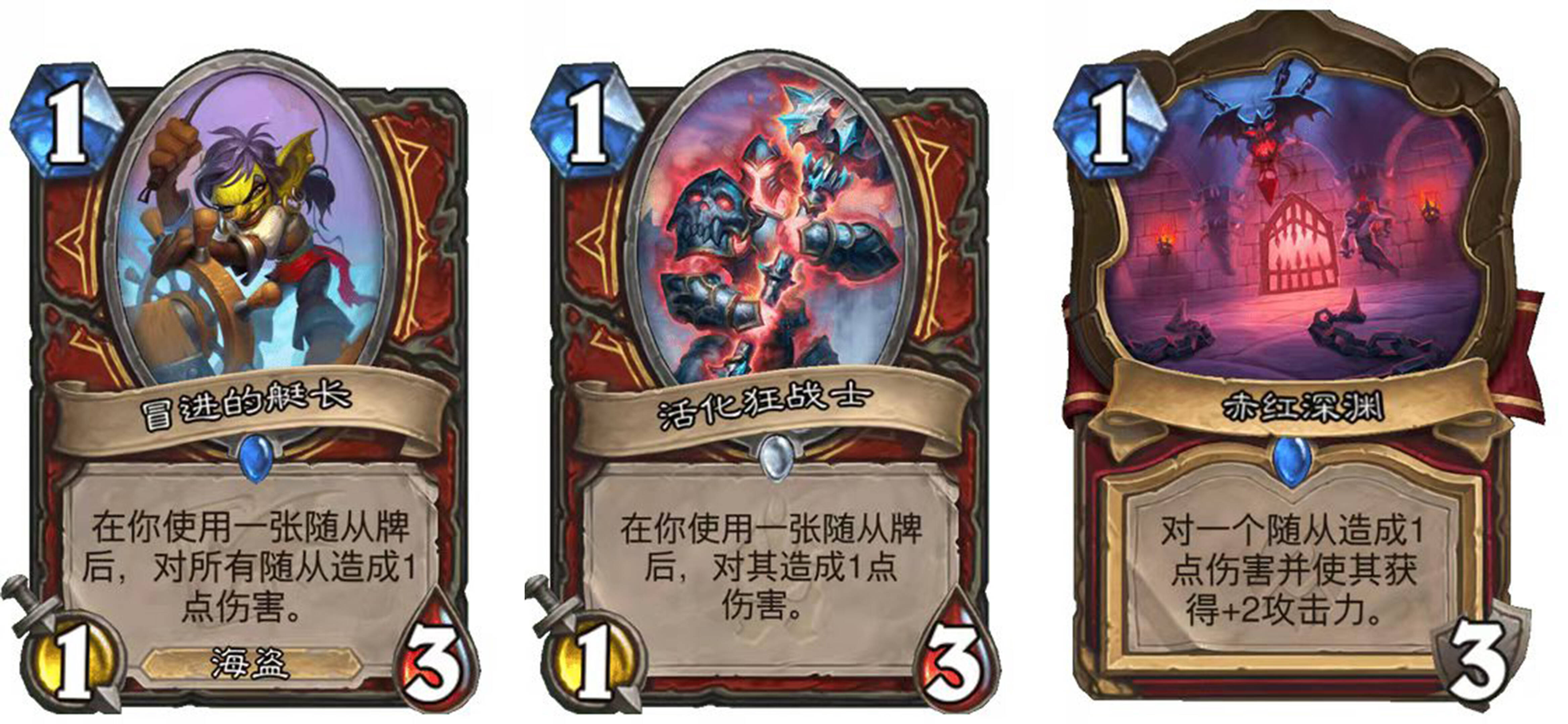 ·活化狂战士:作为艇长不上手的下位替代(主要是艇长只能带2张),1费裸拍身材及格,配合2费激怒随从或者充当艇长弹药,带一张不亏。