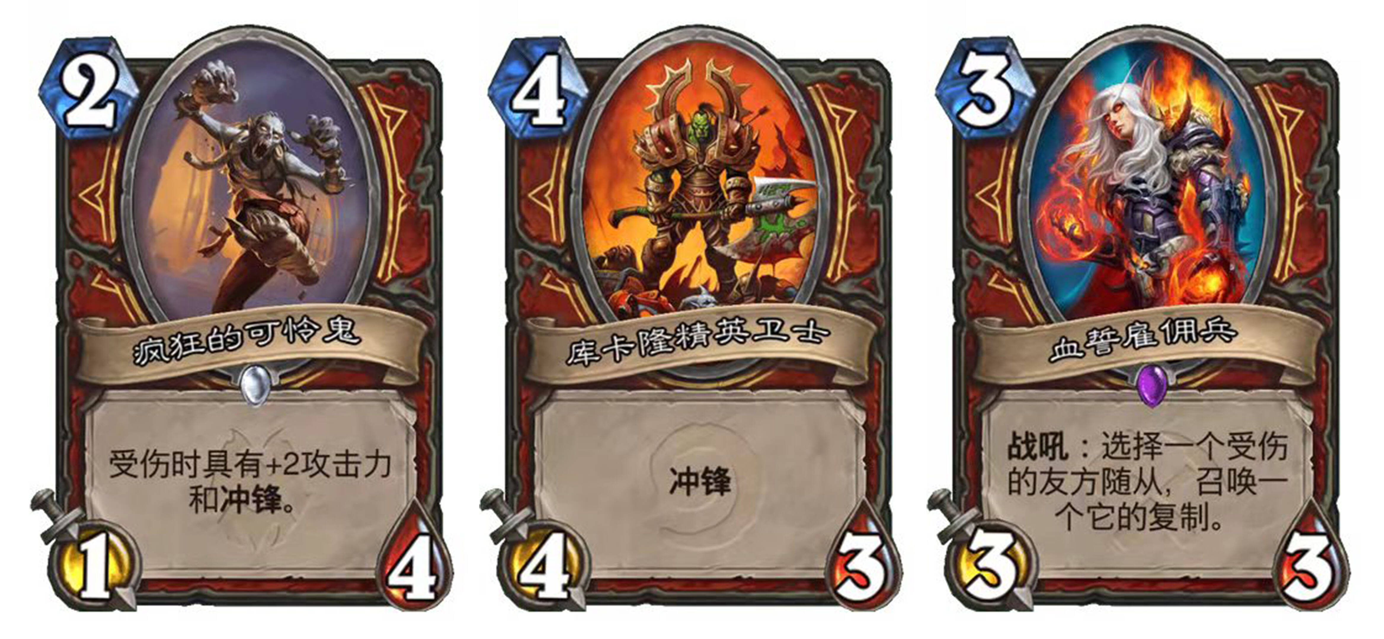 ·疯狂的可怜鬼:2费优质激怒随从,配合艇长、武器、血誓可打出高额伤害,面对快攻2费可以直接裸拍。