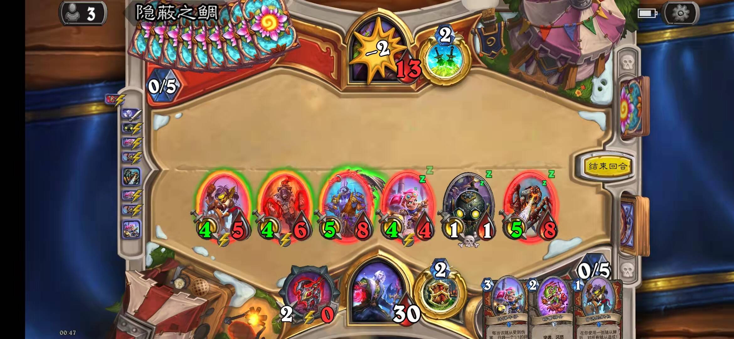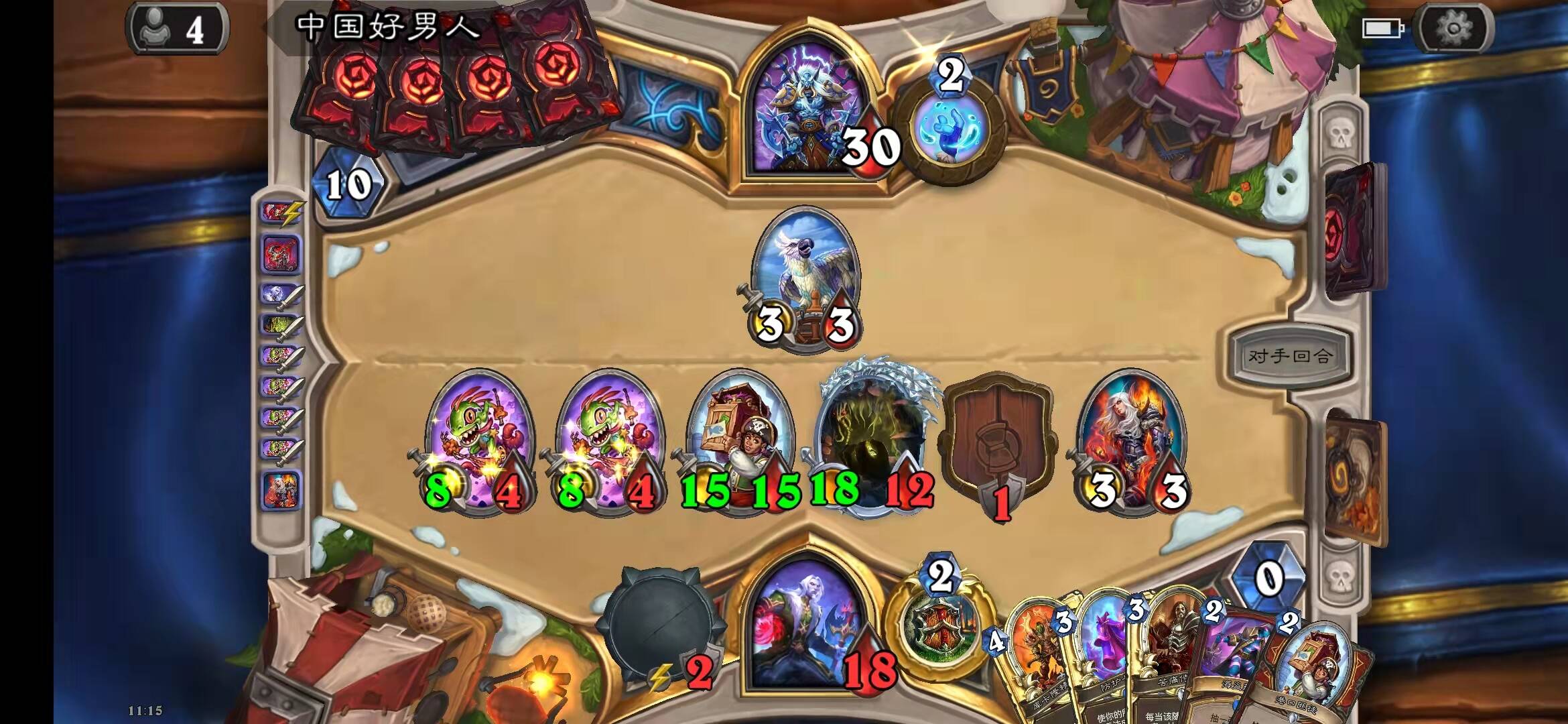 术士以40巨鱼术较为难打,主要看对手4费海魔钉刺者+老巨鳍有没有准时上手,如果没有还可以抢血拼一下。至于卷宗术和小鬼术,自残手段较多,很容易蹭着蹭着血量就自动进入我们的斩杀线,注意受伤随从血量不要太低,及时用武器buff到3血以上防亵渎。
