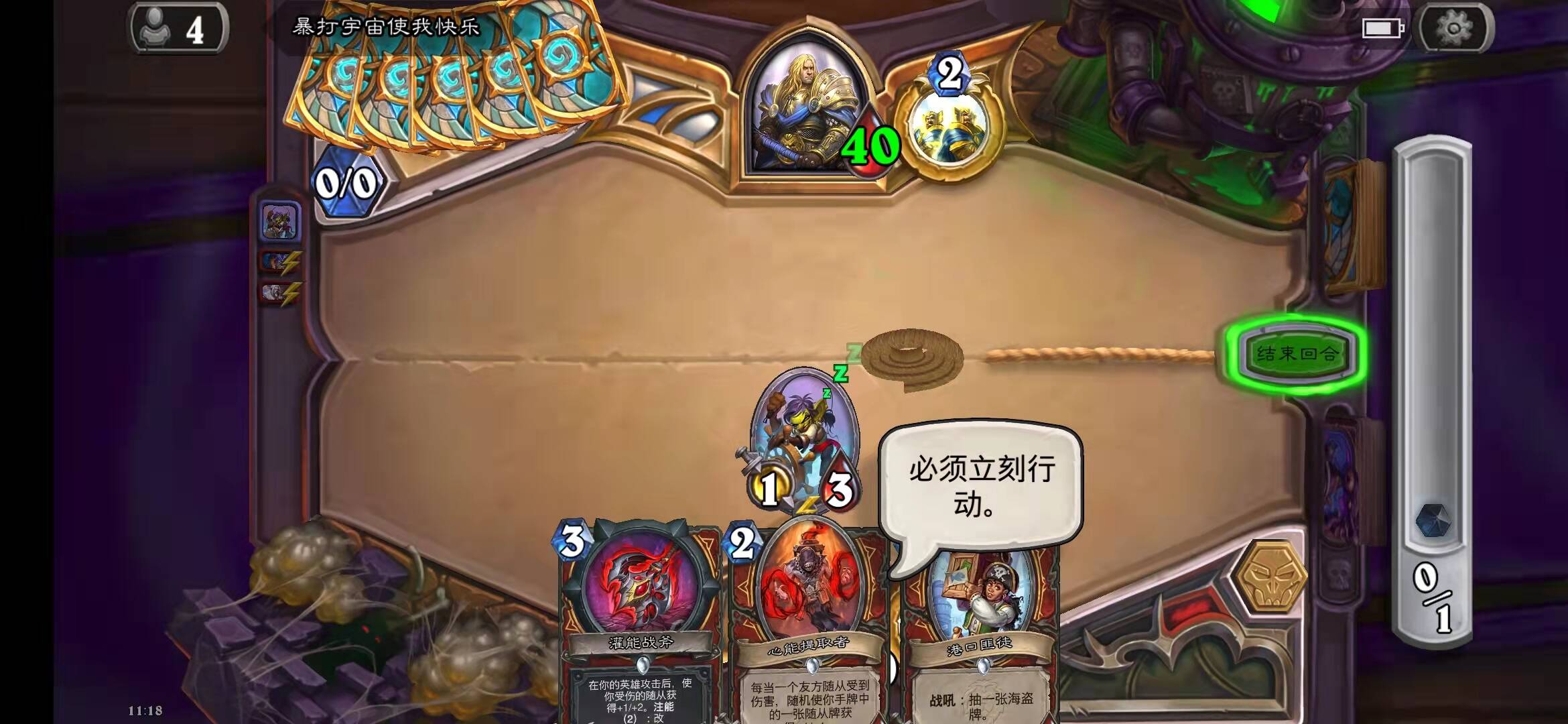 开局默认对面是40宇暗牧,起手找尼鲁巴和长袍,宇宙卡组多为战吼随从,尽管和40宇暗牧对局为3胜2负,但总体上来说是劣势对局,4费狂乱、5费全体狂乱、7费心灵尖啸都是能一卡翻盘,对于我们来说后面能不能上手剑圣和塞布,是能否压死牧师的关键。