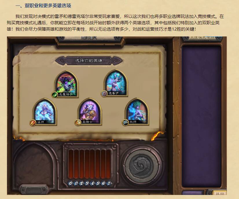 我们发现对决模式的雷矛和德雷克塔尔非常受玩家喜爱,所以这次我们也将多职业选牌玩法加入竞技模式。在购买竞技模式礼遇后,你就能立即在选取英雄时额外获得两个英雄选项,其中包括我们特别加入的双职业英雄!我们会尽力保障英雄和游戏的平衡性,所以无论选项有多少,对战和运营技巧才是12胜的关键!