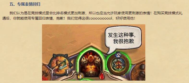 我们认为是在竞技模式里会比排名模式更加刺激,所以也应当允许玩家使用更刺激的表情!在购买竞技模式礼遇后,你就能使用专属回归表情,抱歉!我们觉得这很coooooooool,好好使用他!