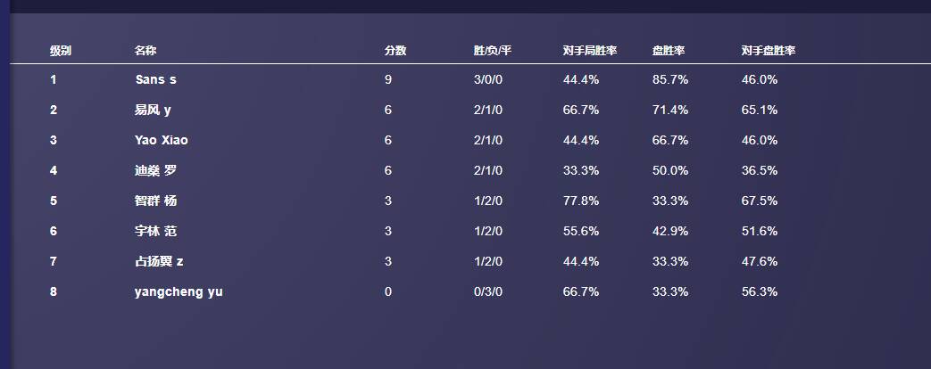以上是10位参赛牌手的比赛积分.
