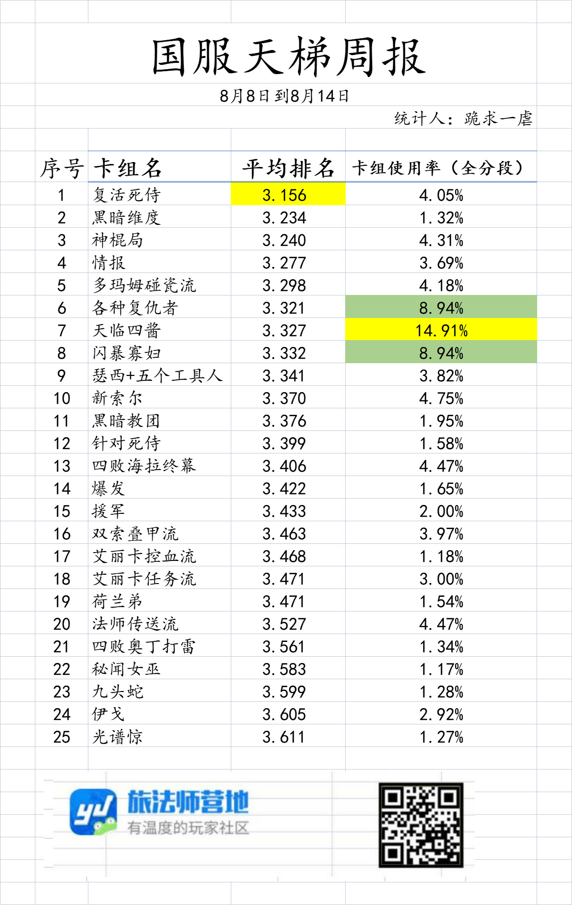 看来最后一周大家都娱乐整活为主了,所有卡组整体排名都有所降低