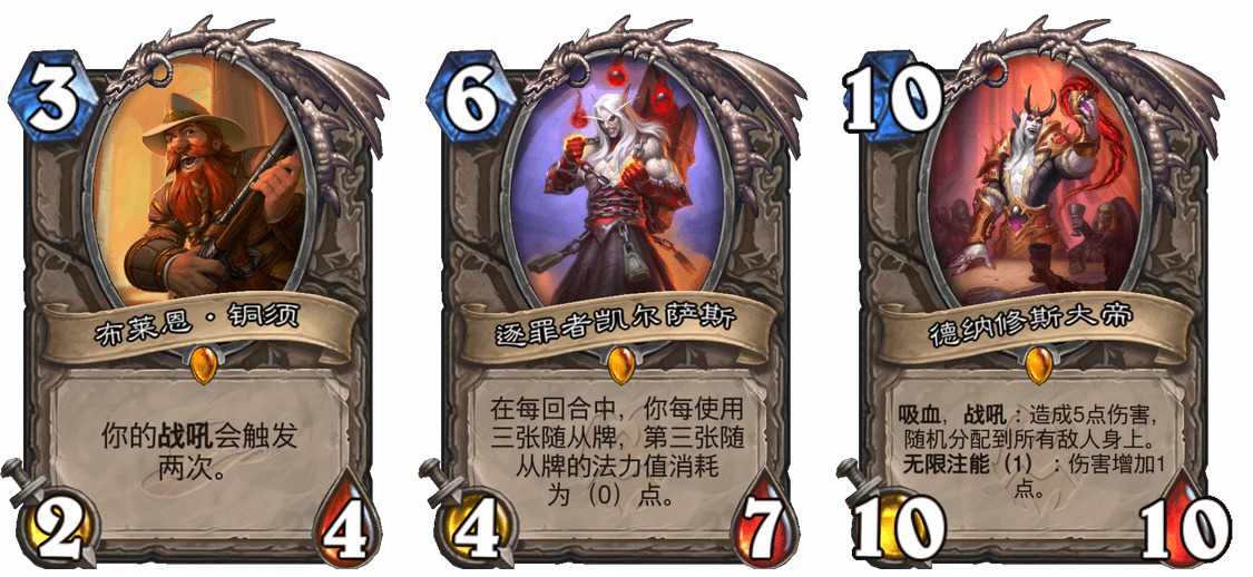 这三张都是中立橙,在多个职业里都有很好的效果,在部分玩家那里也已经形成不满了。这些牌肯定已经是在我们的重点观察之下了,甚至我现在也觉得,这其中至少一张(或多张)迟早要改的可能性是很大的。话虽如此,要是要这么早的把这种新版本里的标志性大牌削掉,我们觉得还为时过早。在很大程度上,它们确实是达到目标了的,确实让人为之兴奋,确实能扮演好终结手段的角色。但我们也确实对它们终结起来的速度有点担心,而且面对它们时的体验也已经摆在那里。我们会在新环境下再等等看。