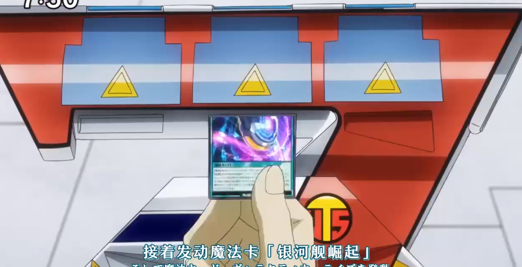 此时游迪亚斯抓到了可以把对手怪兽弹回手的银河舰斥力,所以他召唤了3个下级。兹维乔看穿了游迪亚斯的战术,发动虚空拦截,随机丢游迪亚斯1手。银河舰斥力被丢掉了,只能盖1后过。