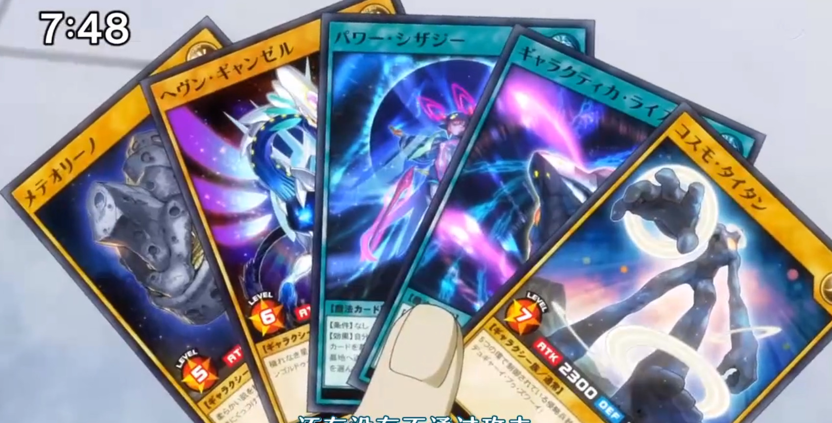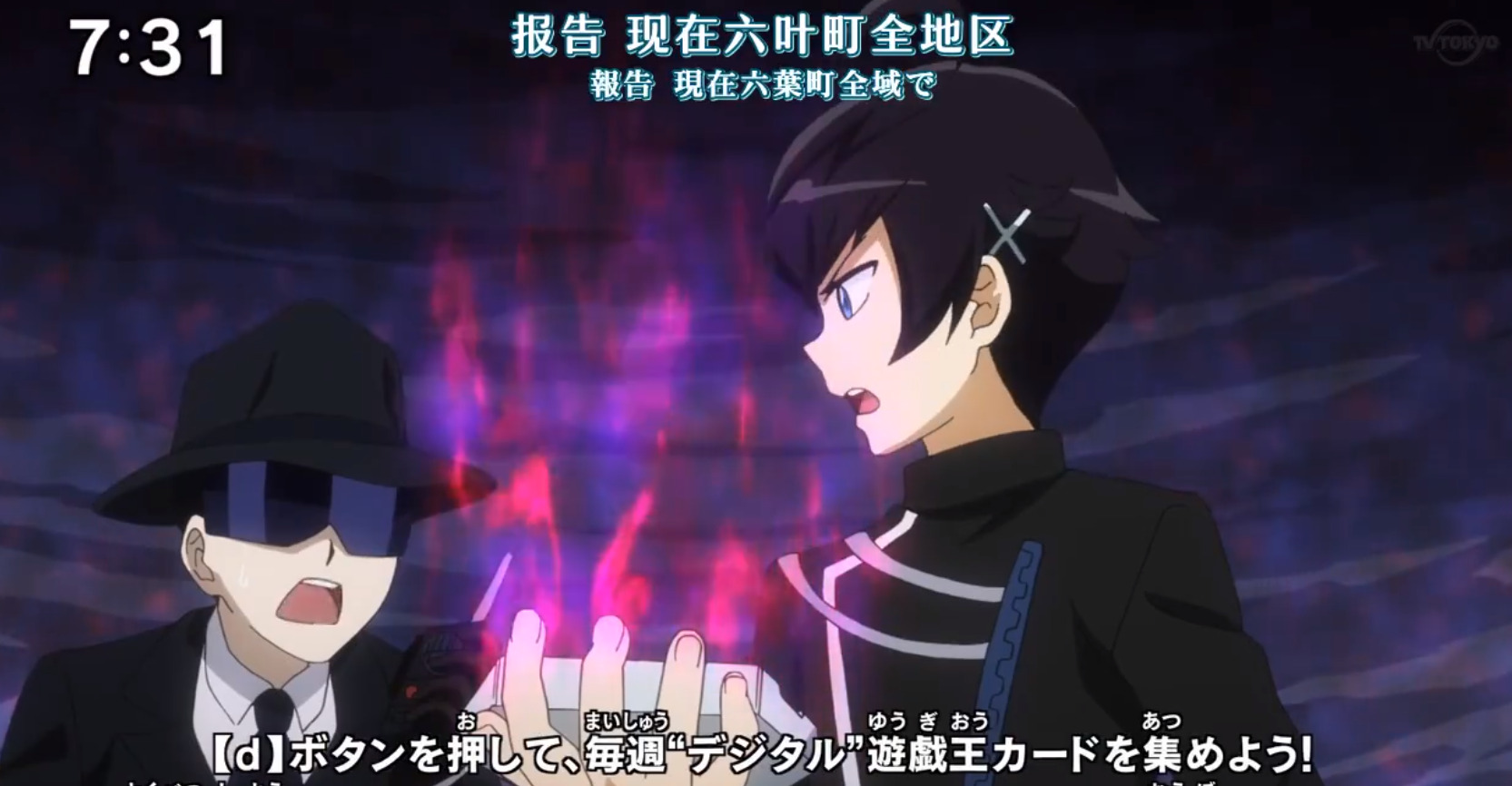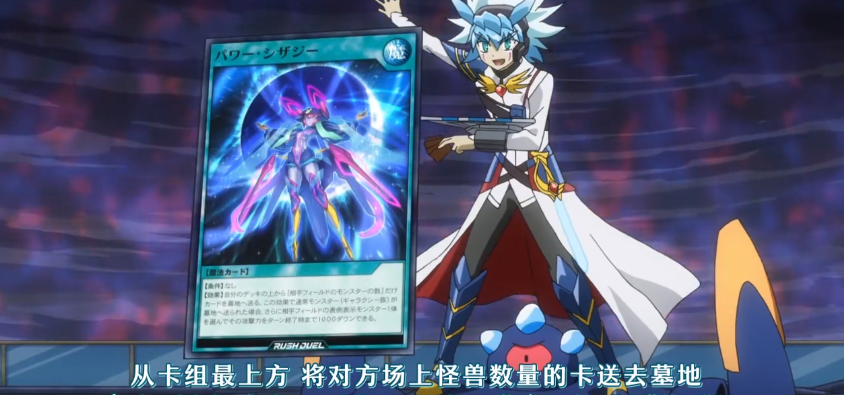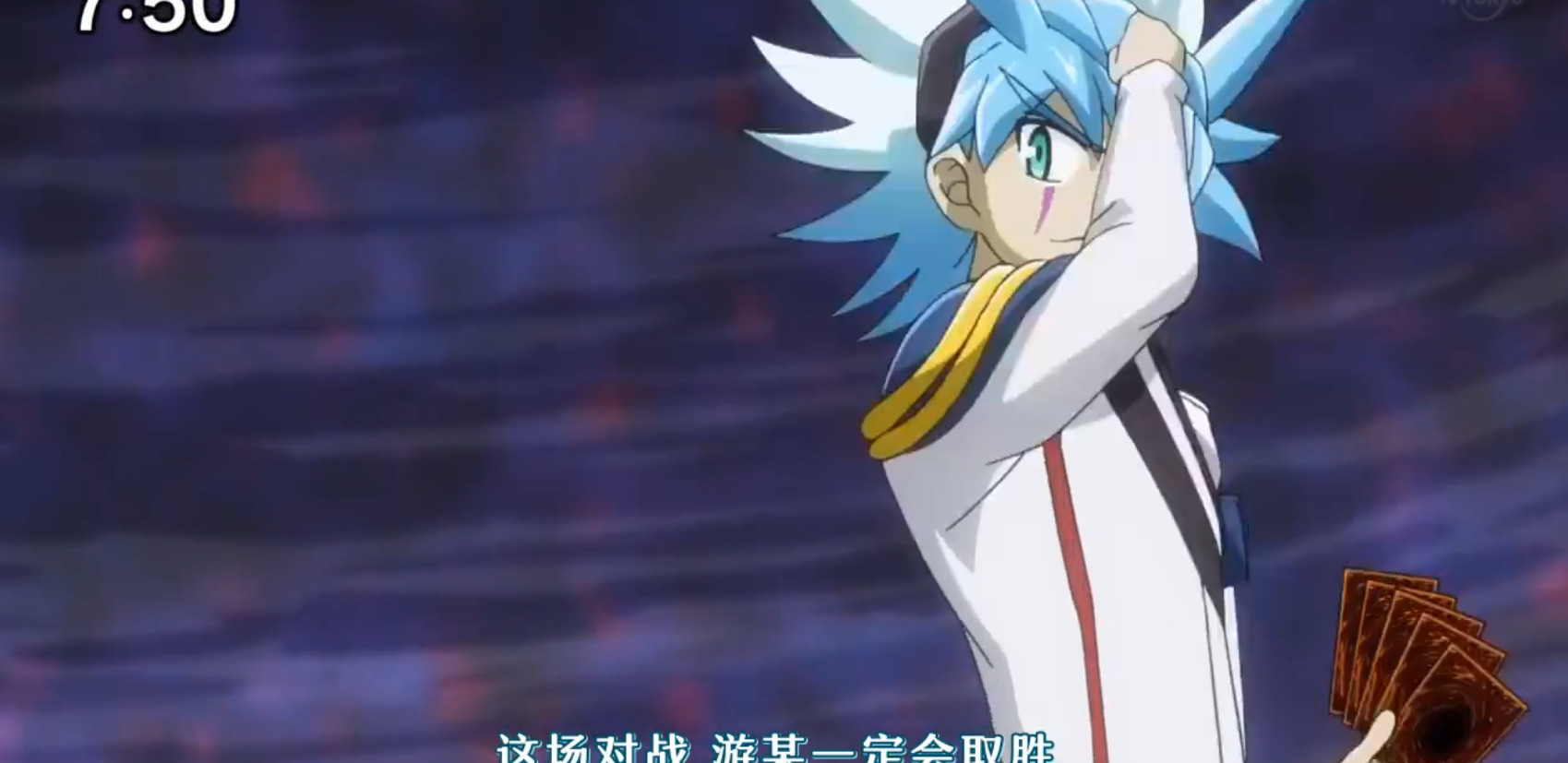 本集接上集,在兹维乔大地珠力量全开和怪兽融合之后。全镇的决斗盘和卡组都受到了影响,游飞受到的影响最大,直接晕了过去。