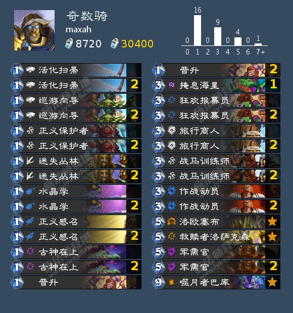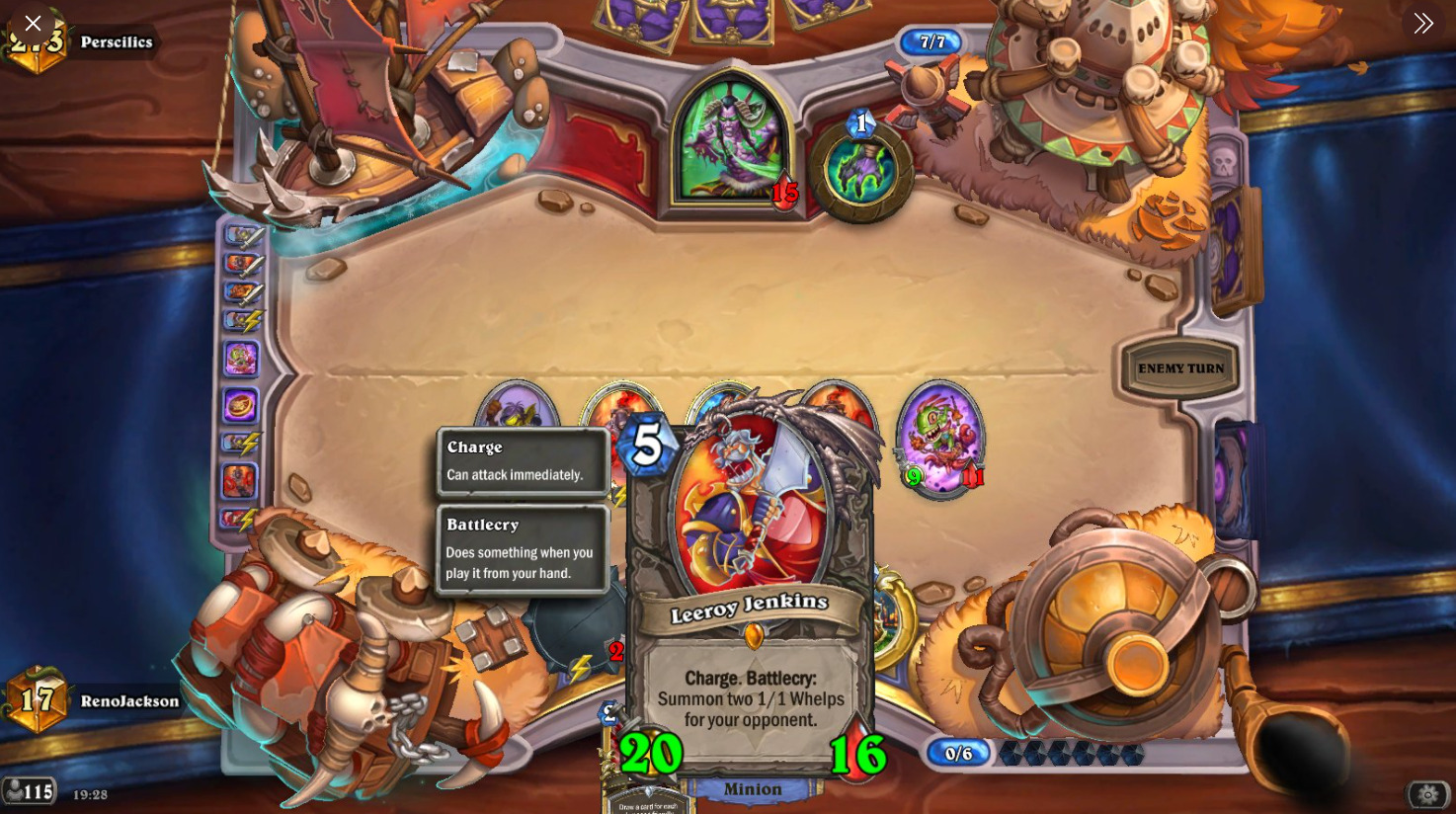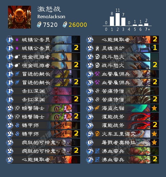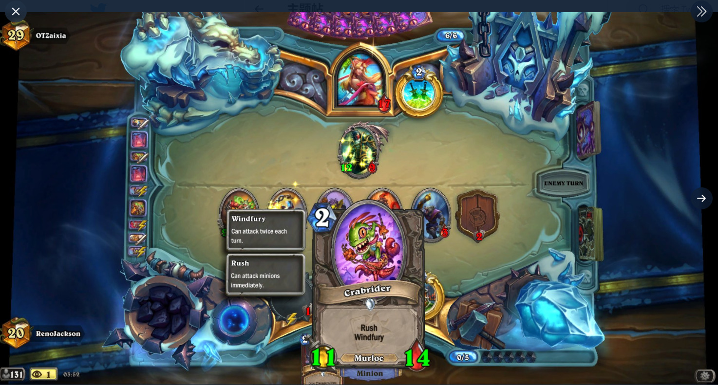 RenoJackson使用的一套激怒战,最终打到14名,他这套卡组兼顾场面,更节奏一些,以下发几张他实战截图大伙感受一下。