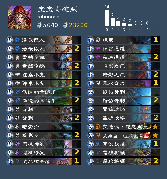 robooooo在20+名划水用的奇迹贼,讲究一个不夹断,重新回到了当时二范刚出版本的卡组。
